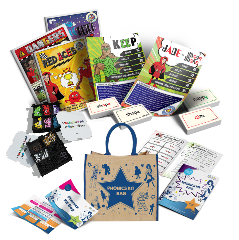 The KS2 Phonics Kit Bag provides targeted, engaging support for learners who still need help with phonics. It includes everything needed for rapid progress: magnetic letters, flashcards, activities, and comics.